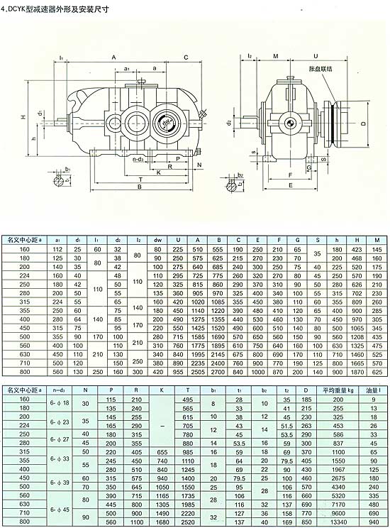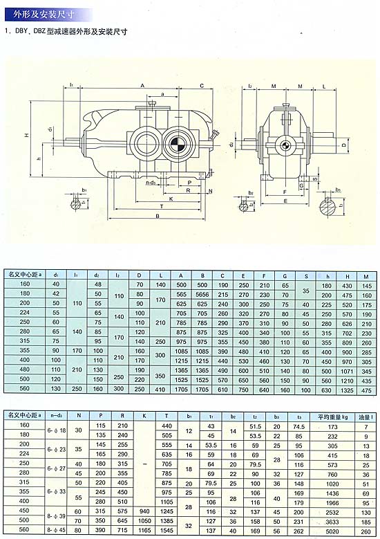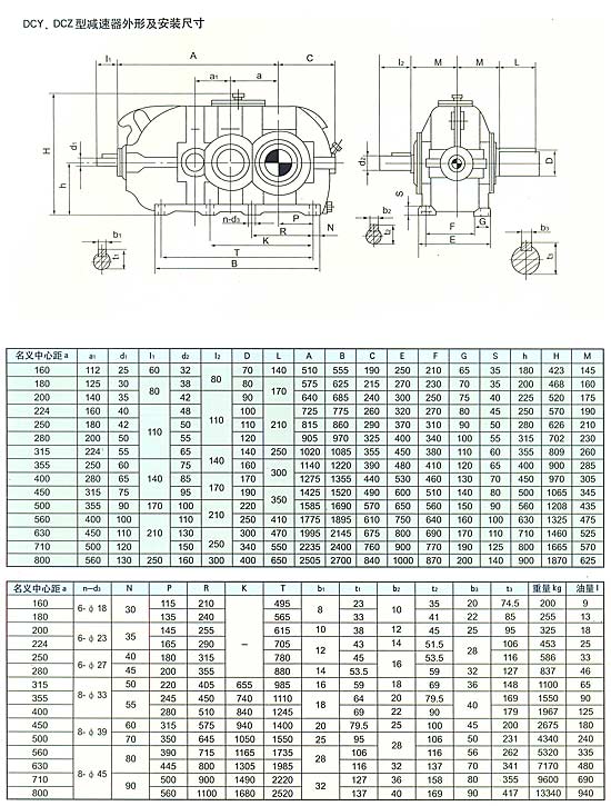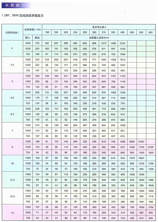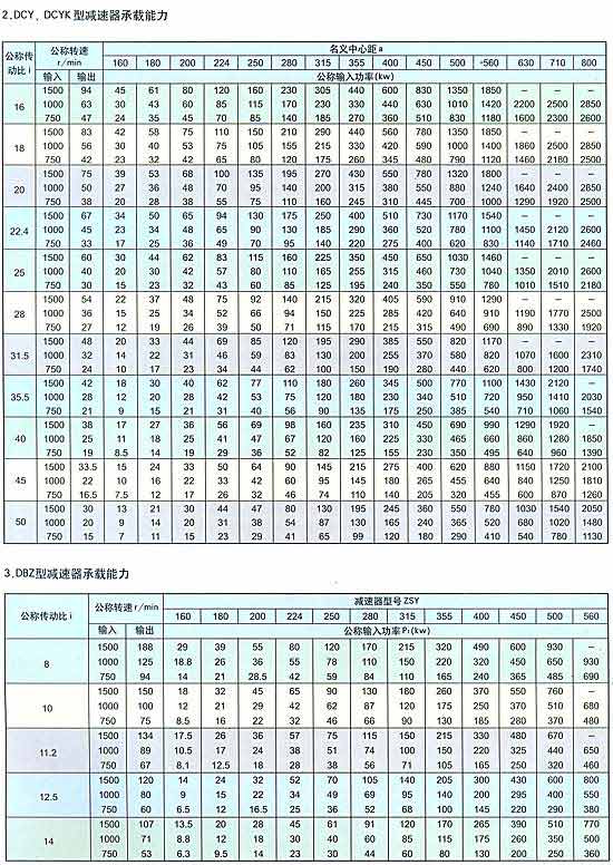 概述 圓錐圓柱齒輪減速器(以下簡稱減速器),用于輸入軸與輸出軸呈垂直方向布置的傳動裝置。主要用于帶式輸送機及各種運輸機械,也可用于煤炭、冶金、礦山、化工、建材、輕工、石油等各種通用機械的傳動機構(gòu)中。該產(chǎn)品具有承載能力高、噪音低、體積小、重量輕、效率高、使用壽命長等優(yōu)點。 型號標準 減速器的型號由型式代號,名義中心距a(末級中心距),公稱傳動比,裝配型式代號,輸入軸旋轉(zhuǎn)方向代號組成。 D一帶式輸送機類組代號,B一二級傳動,c一三級傳動,Y一硬齒面齒輪,z一中硬齒面齒輪,K一輸出軸為空心軸形式。 名義中心距:用實際數(shù)字表示,單位為mm。 傳動比:用公稱傳動比表示。 裝配形式:用羅馬數(shù)字l、ll、…、jV表示。 輸入軸的旋轉(zhuǎn)方向:面對輸入軸方向看,s為順時針方向,N為逆時針方向。