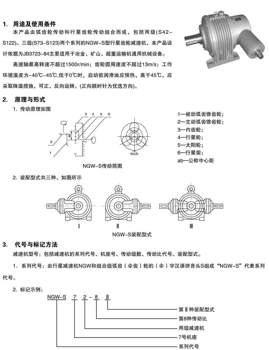 本產(chǎn)品由弧齒輪傳動和行星齒輪傳動組合而成,包括兩級(S42-S122)。三級(S73-S123)兩個系列的NGW-S型行星齒輪增速機,本產(chǎn)品設(shè)計依據(jù)為JB3723-84主要適用于冶金、礦山、超重運輸機通用機械設(shè)備。