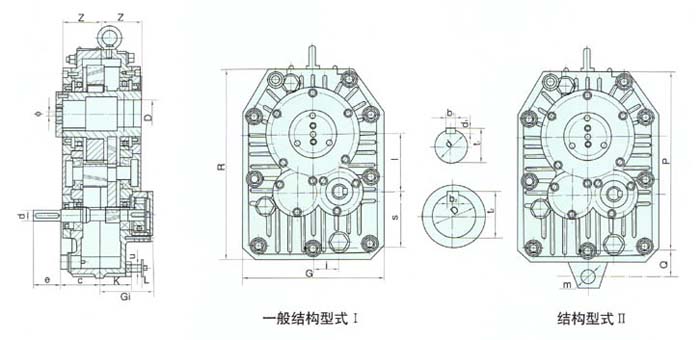 2、輸入軸型式:“I”右裝,“II”左裝;